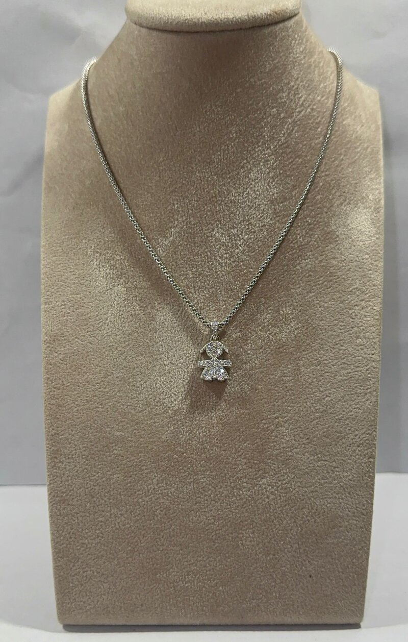 la collana è realizzata in aregnto 925 ed è lunga 45cm mentre il bebè è 1cm