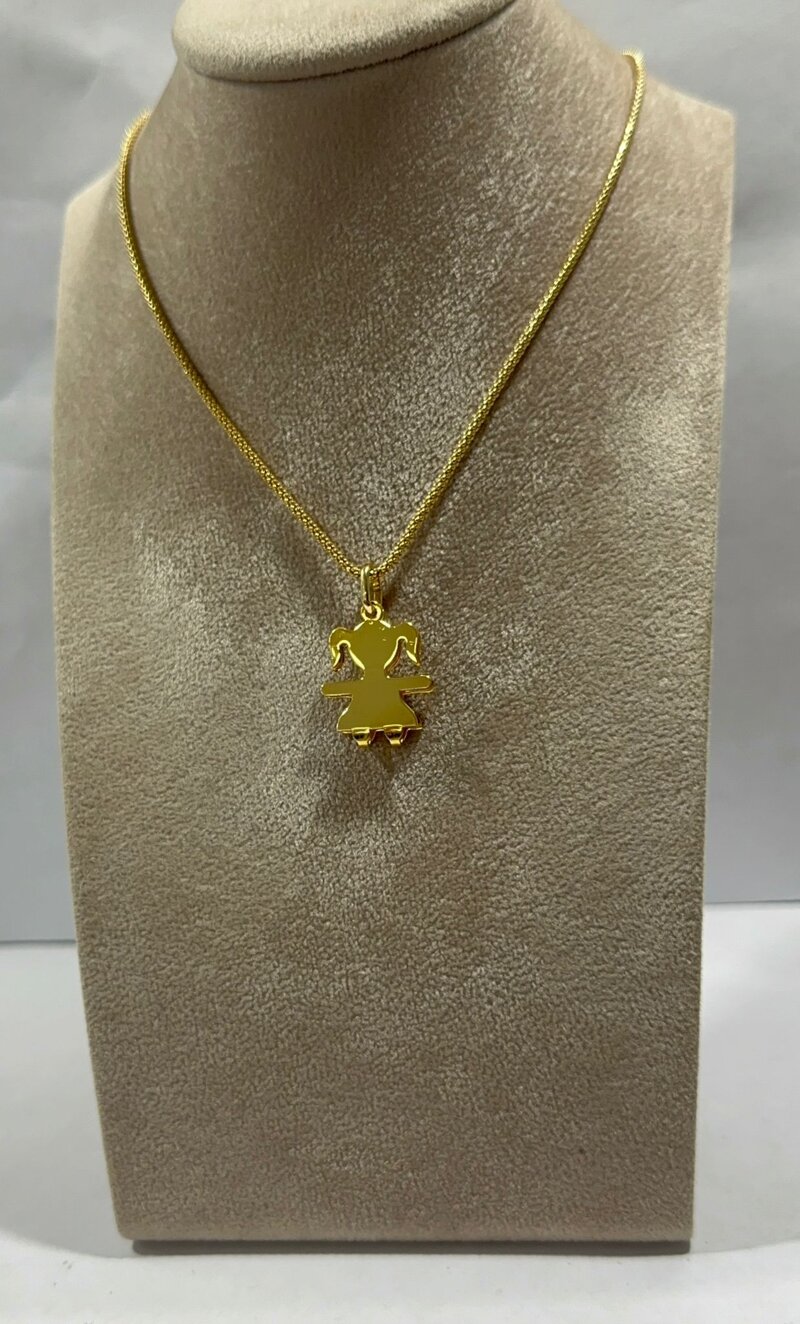 collana bebè realizzata in argento 925 dorato, la collana è 50cm mentre il bebè è 2.5cm