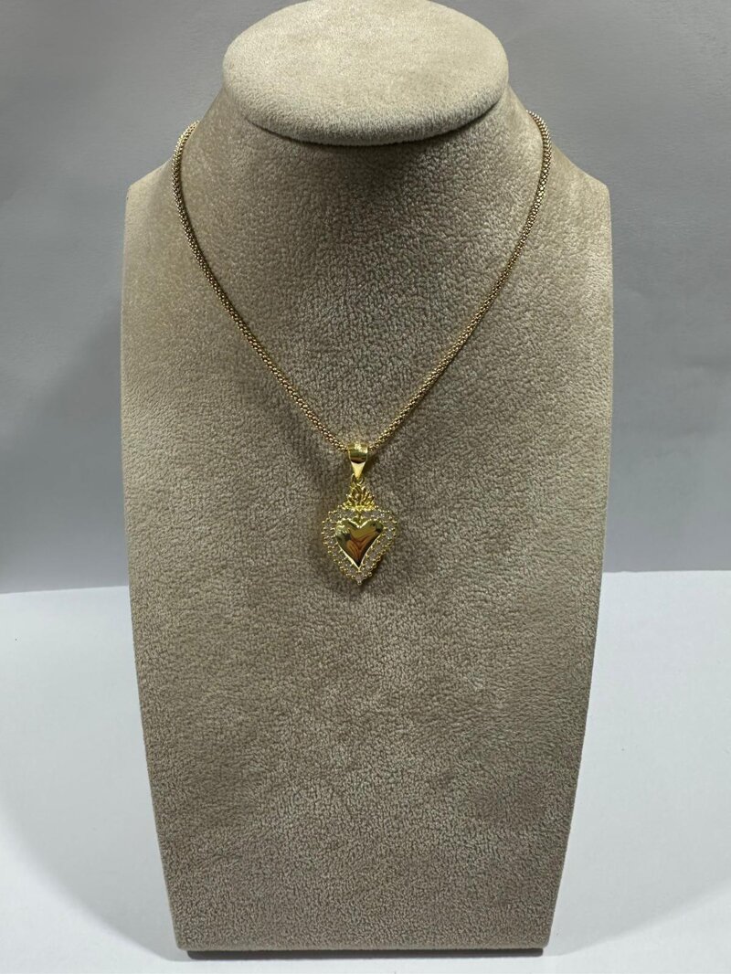 Collana cuore sacro lunga 45cm realizzata in argento 925 dorato